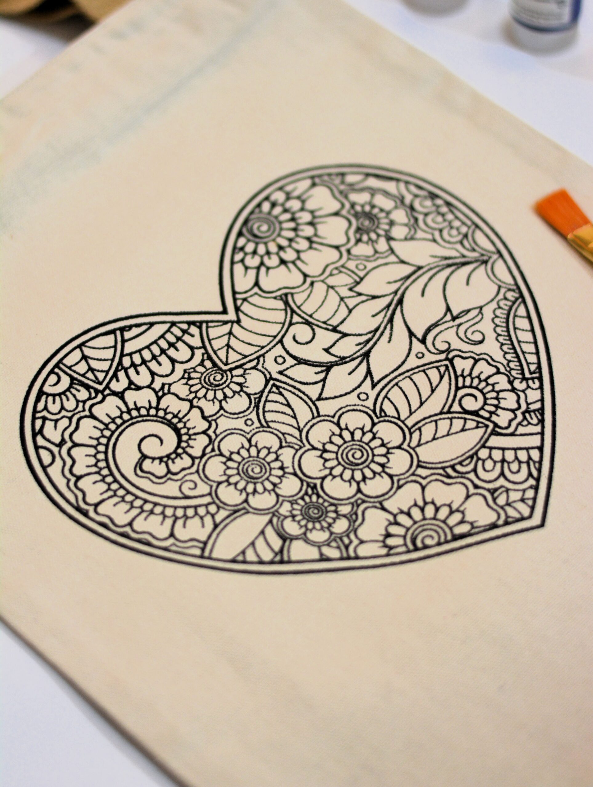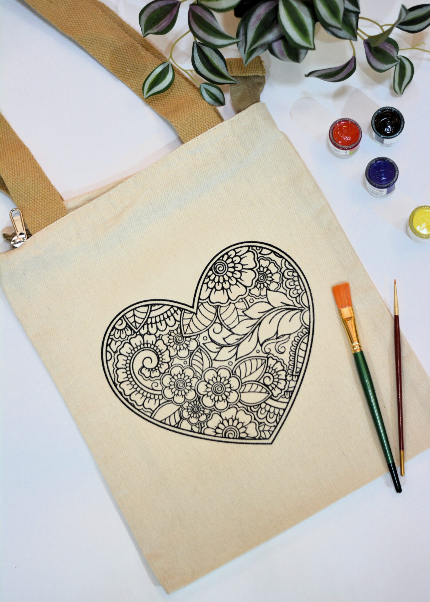 The Heart Zentangle DIY Tote Bag blends emotion and creativity through flowing zentangle patterns shaped into a heart. This design encourages intuitive colouring, emotional expression, and mindful relaxation.