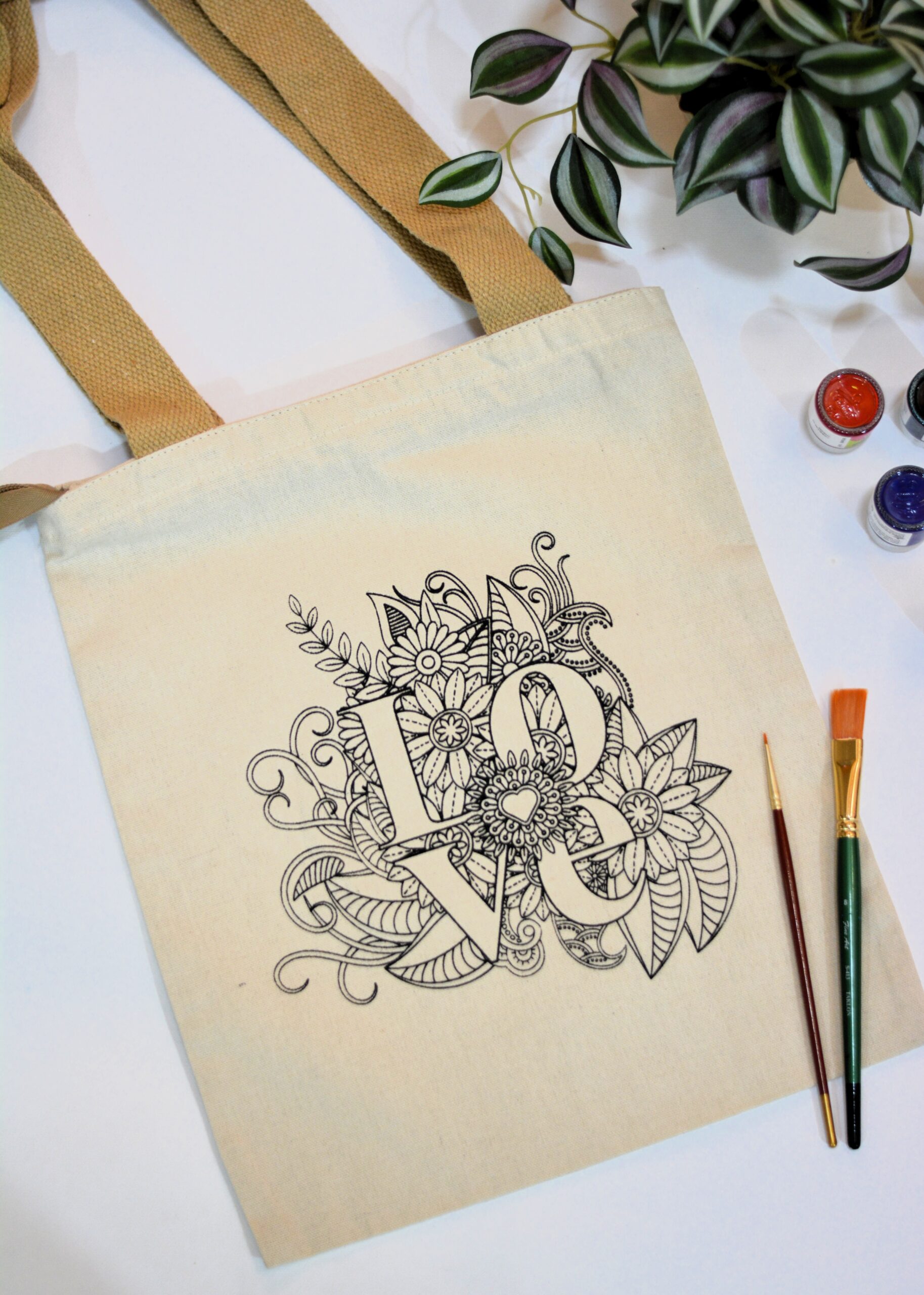 The LOVE Zentangle DIY Tote Bag features artistic typography filled with intricate floral and zentangle details. This design is all about joy, expression, and spreading positivity through creativity.
